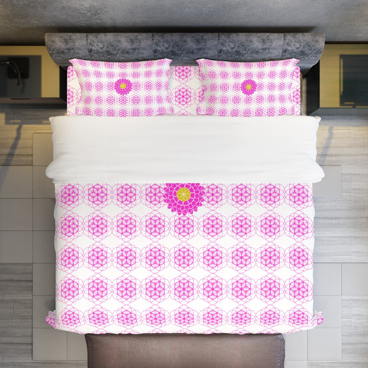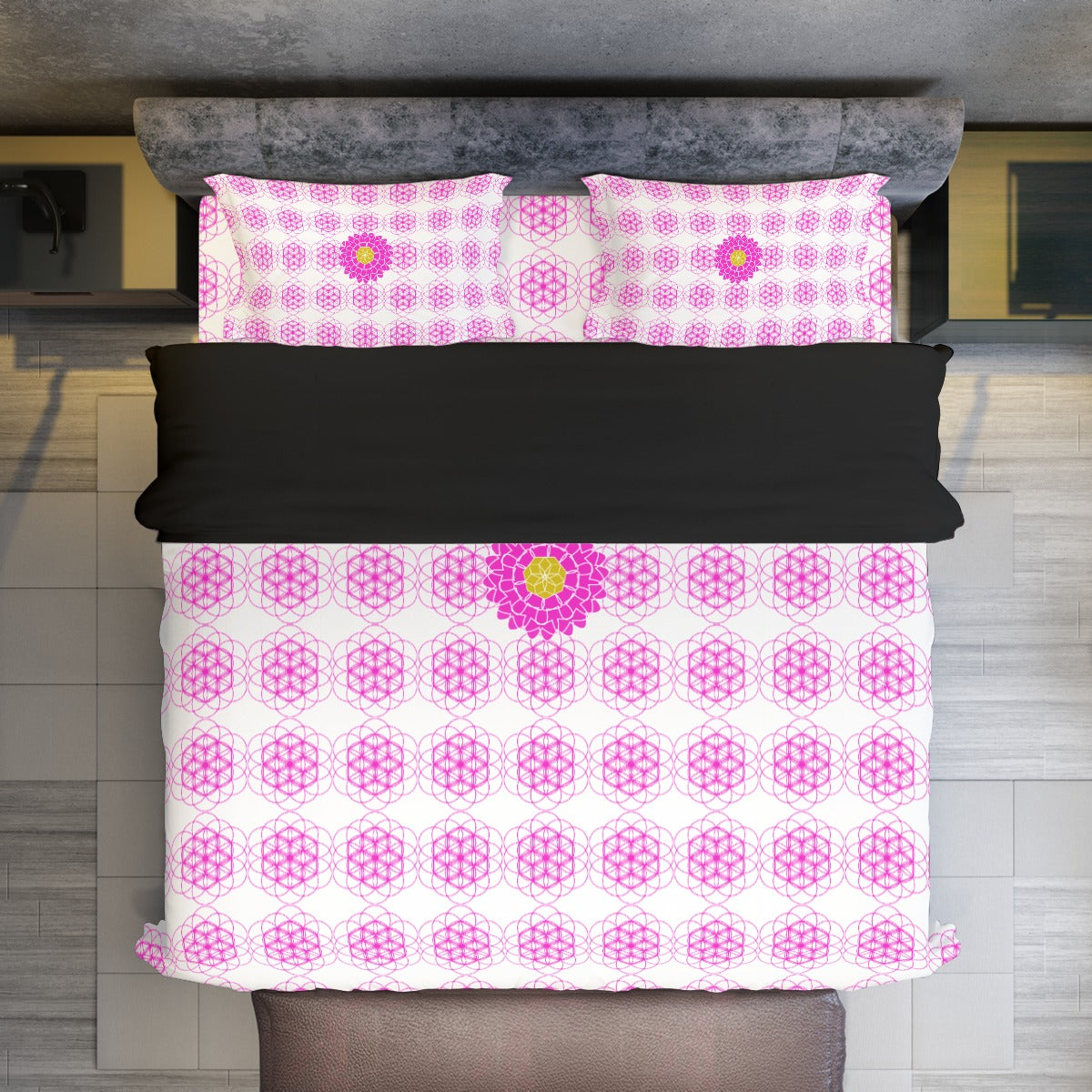 Before using the bed for healing or sleep, place your right or left hand on the lotus flower geometry on the center of the quilt and breathe in and out fully at least 5 times as your living prana is used as the power source to enhance and amplify the Prana Bed. Do the same for any other additonal items that you may have for the Prana Bed (e.g. - Duvet Cover, sheet and pillow cases).